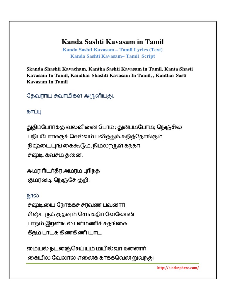 This article is about kandha sasti kavasam lyrics in tamil.we are providing kandha sasti kavasam lyrics in tamil and english languages. Reviews there are no reviews yet. We did not find results for: கந்த சஷ்டி கவசம்) is a hindu devotional song composed in tamil by devaraya swamigal (born c. கந்த சஷ்டி கவசம்) is a hindu devotional song composed in tamil by devaraya.